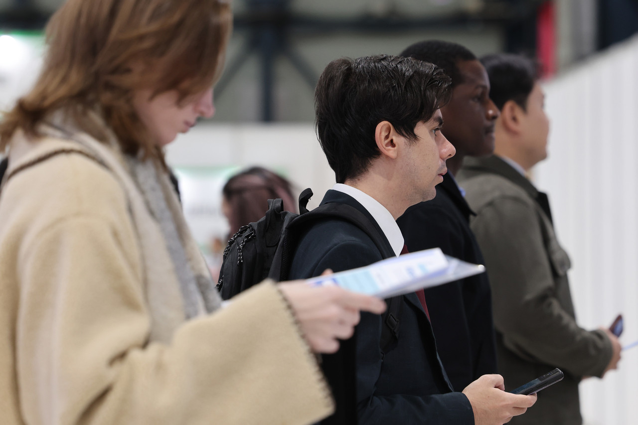 Người tìm việc tại hội chợ việc làm ở quận Gangnam, Seoul (Hàn Quốc) ngày 20/12/2025. Ảnh: Yonhap